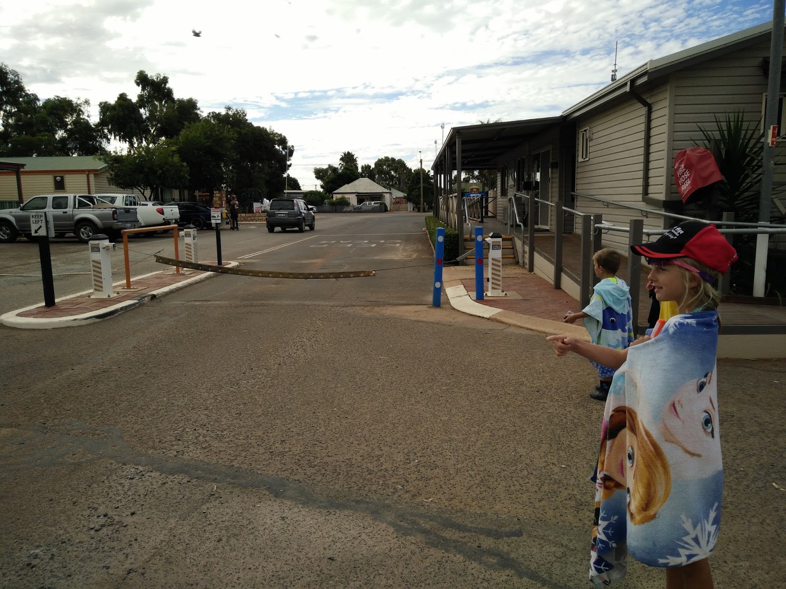 The kids, after helping with the washing, earnt some time in the pool. But seemed more fascinated with the chain wire security boom gate.
